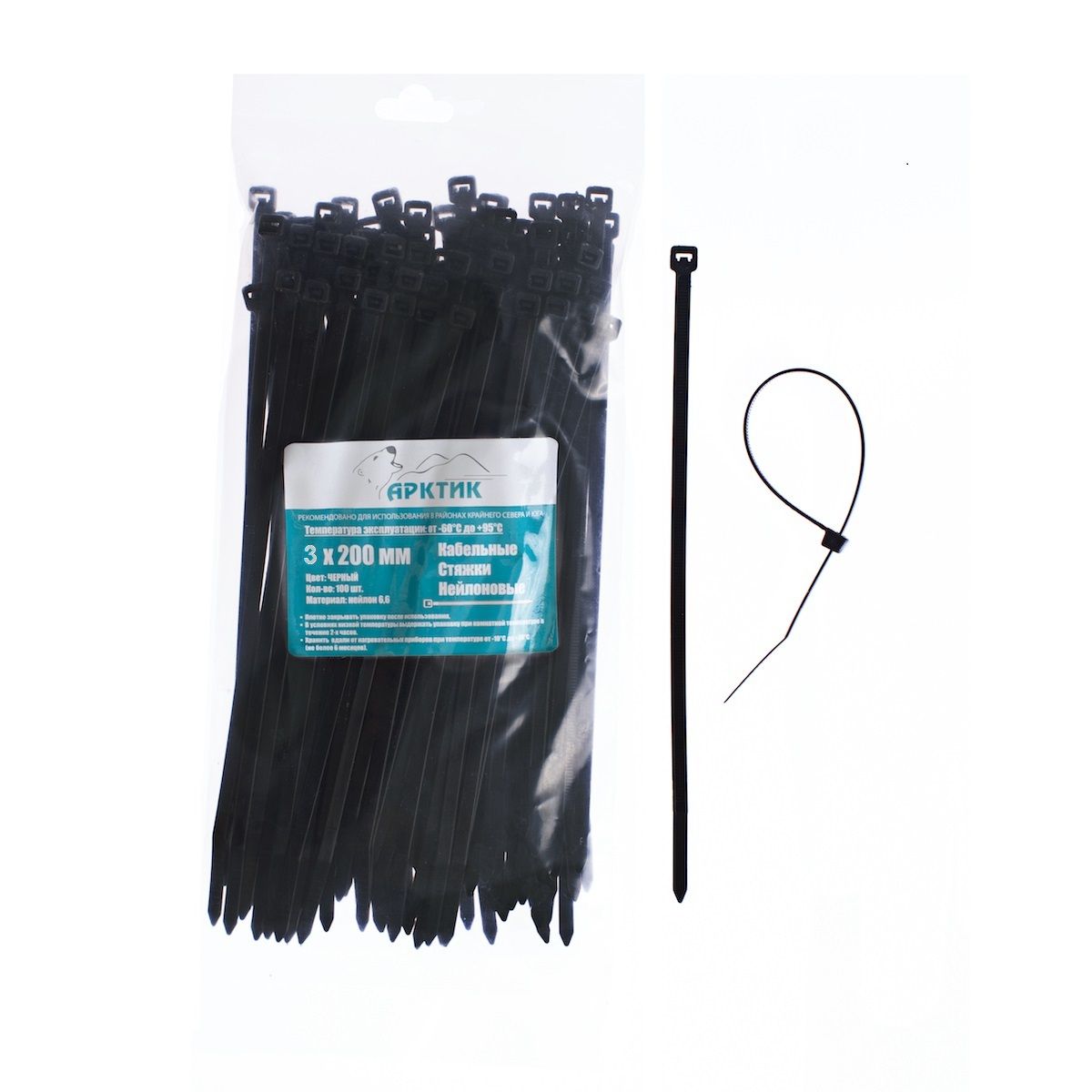 АРКТИК морозостойкие кабельные стяжки 3 Х 200 черные (2,5 мм, 100шт/уп)