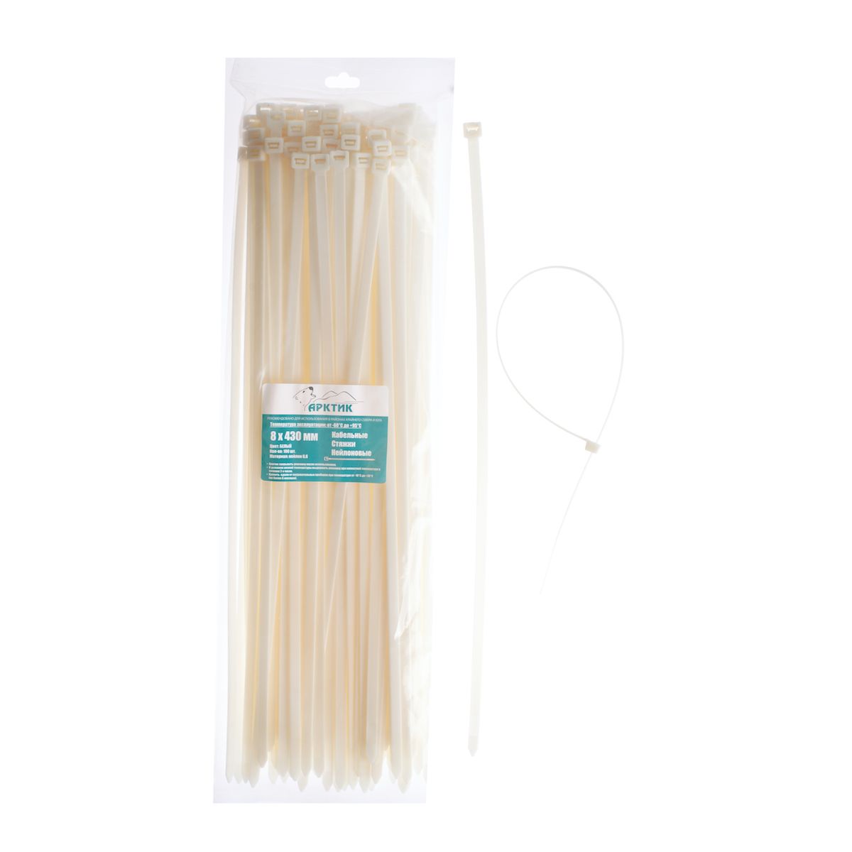 АРКТИК морозостойкие кабельные стяжки 8 Х 430 белые (7,6 мм, 100шт/уп)