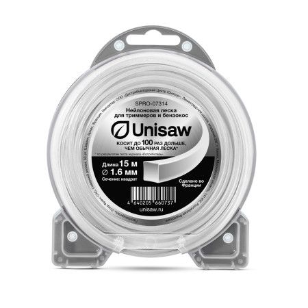 Леска триммерная 1.6мм 15м квадрат, Unisaw.