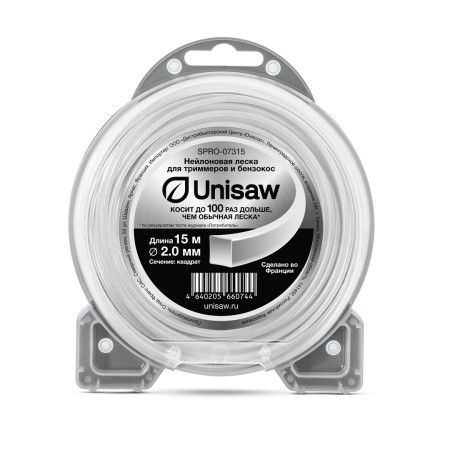 Леска триммерная 2.0мм 15м квадрат, Unisaw.