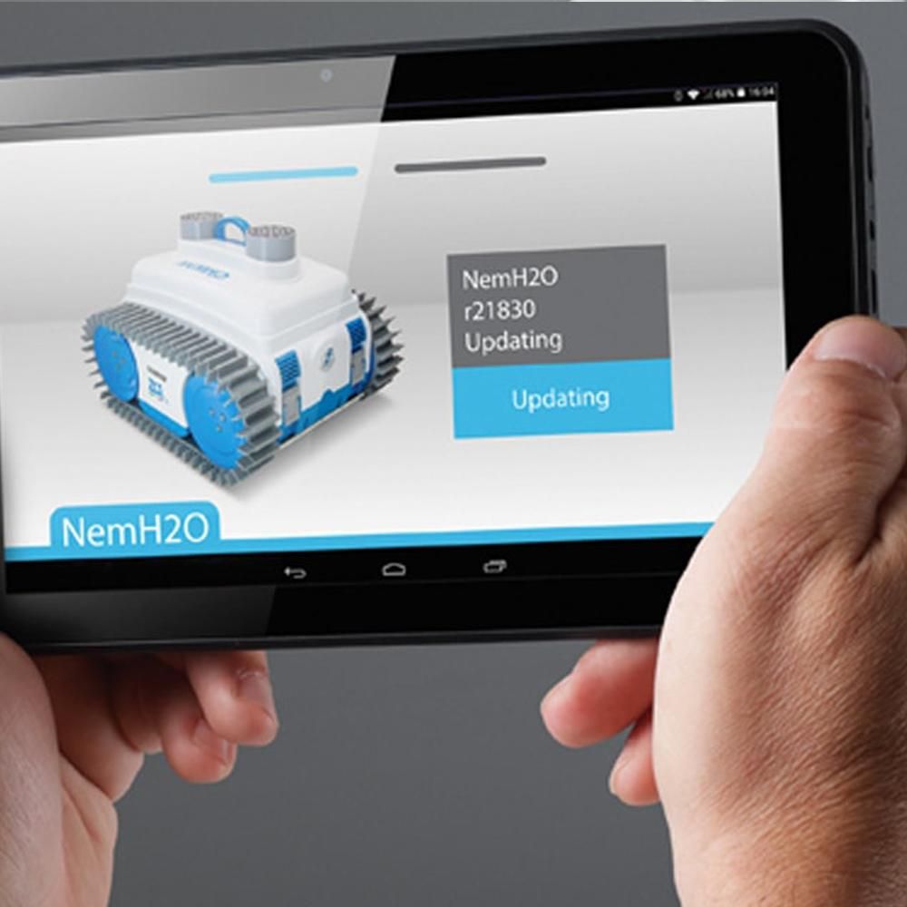 NEMH2O способен адаптироваться к любым условиям. Он перемещается по горизонтальной, наклонной и вертикальной поверхностям, даже по ступеням. Робот эффективен на любом дне – гладком или шероховатом. Отсутствие проводов дает возможность перемещаться без ограничений и помех.
