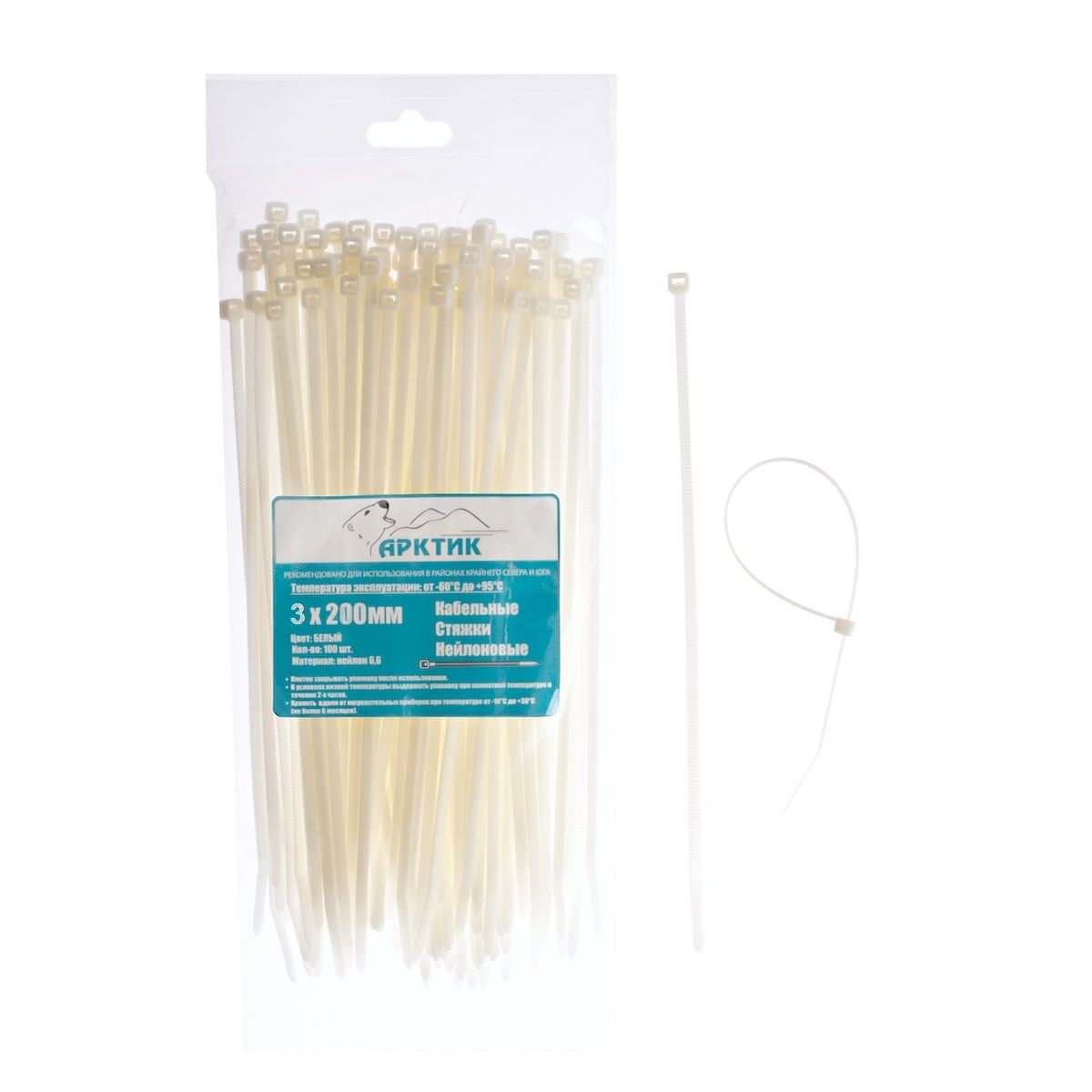 АРКТИК морозостойкие кабельные стяжки 3 Х 200 белые (2,5 мм, 100шт/уп)