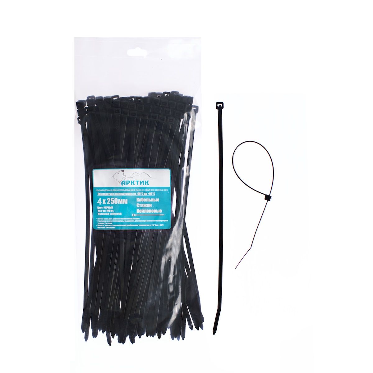 АРКТИК морозостойкие кабельные стяжки 4 Х 250 черные (3,6 мм, 100шт/уп)