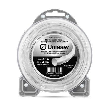 Леска триммерная 2.4мм 15м спираль, Unisaw.