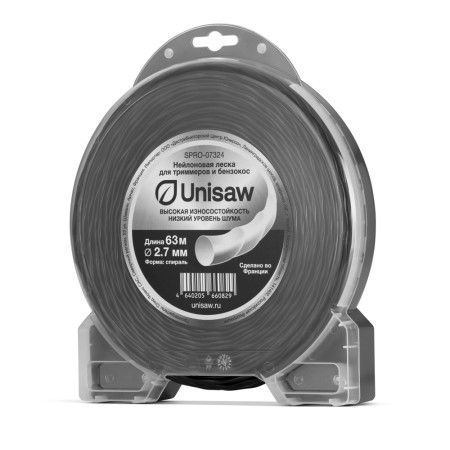 Леска триммерная 2.7мм 63м спираль, Unisaw.