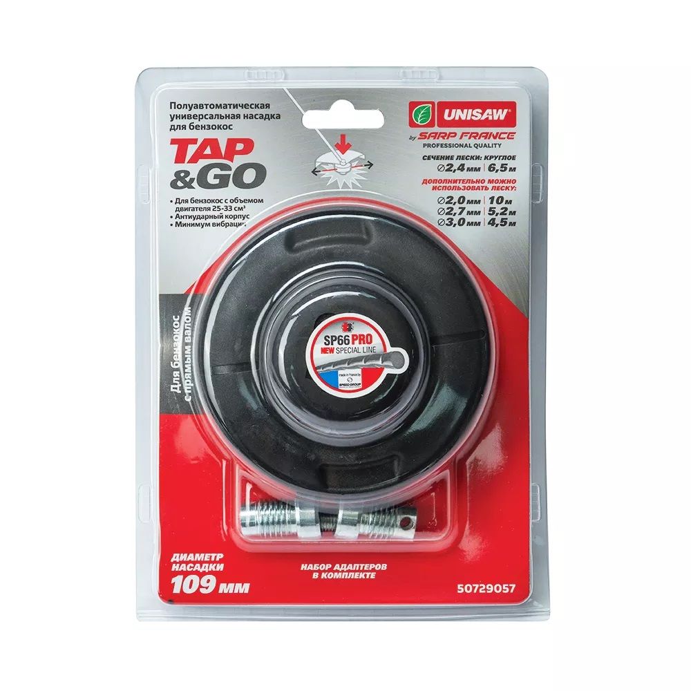 Насадка универсальная Unisaw Professional Quality TAP&GO 109 мм для бензокос с прямым валом и объемом двигателя 25-33 см³.
