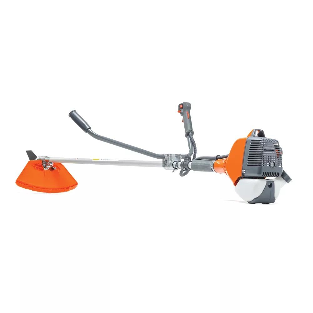 Особенным преимуществом модели является наличие двух режущих элементов. Бензокоса работает как с использованием лески, так и лопастными ножами. Это позволит пользователям срезать разную по плотности и жесткости траву.