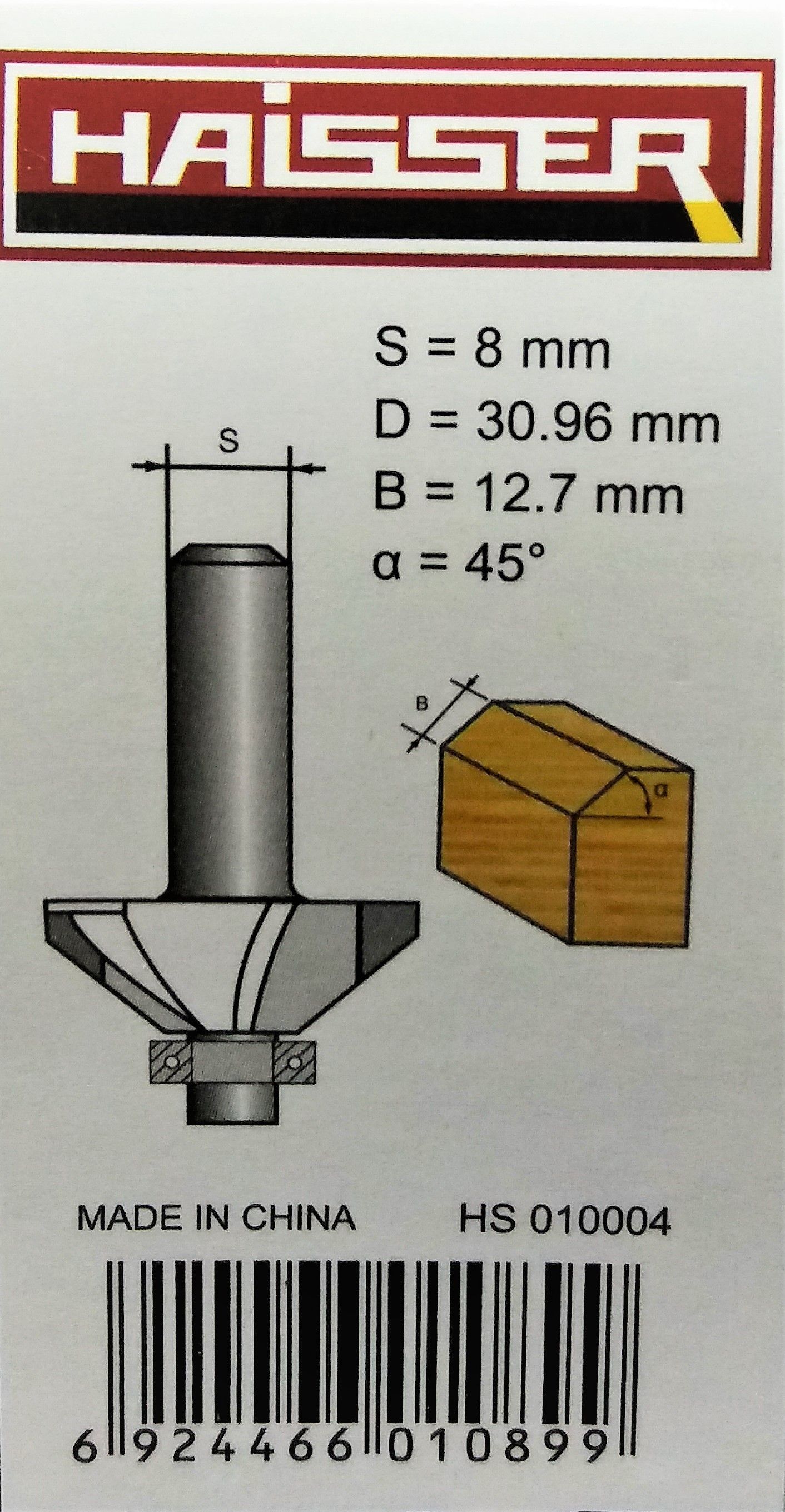 Фреза фасочная с подшипником, 45 град. S 8 x R 12,7 x D 30,96, Haisser