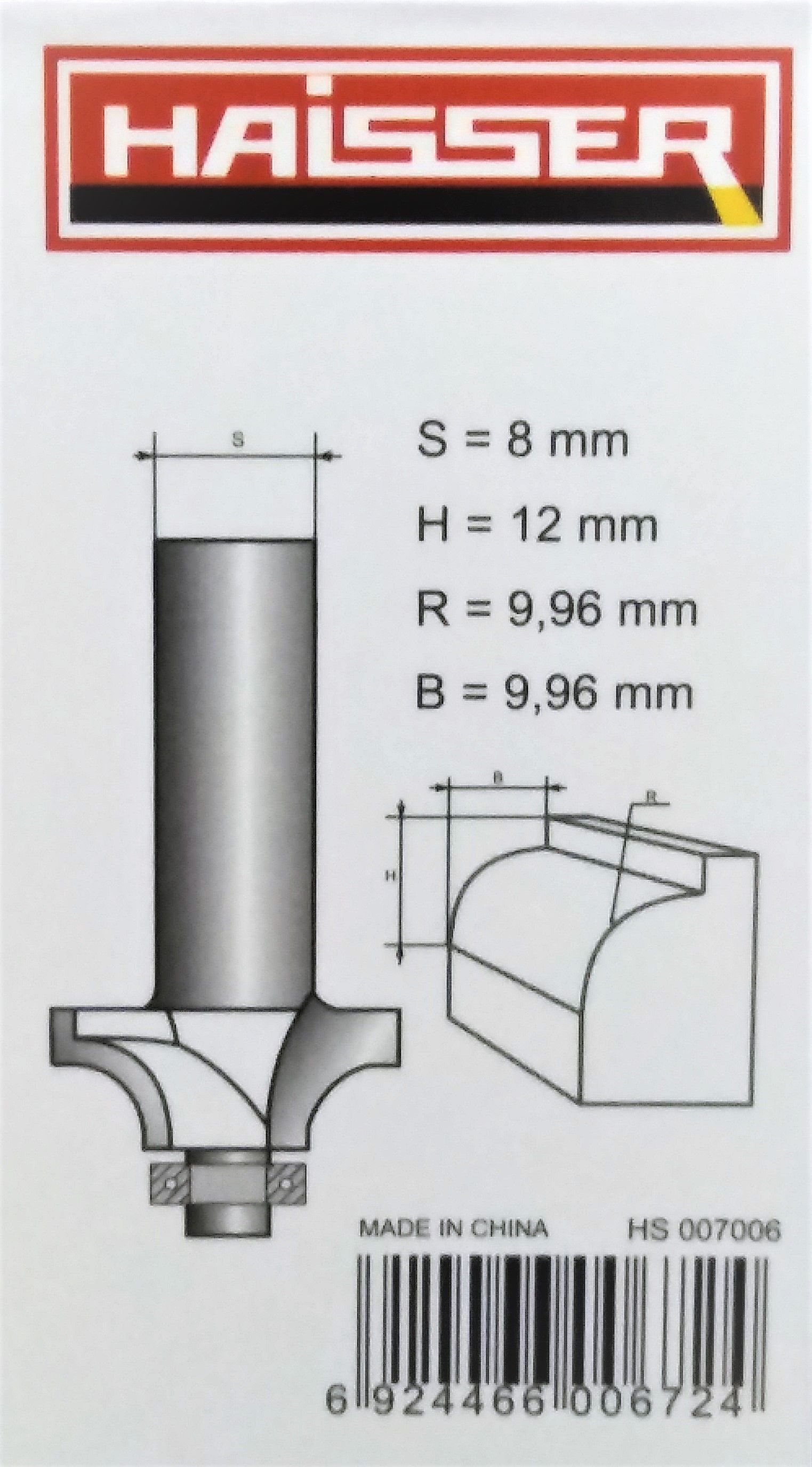 Фреза кромочная с подшипником S8 x R7,96 x B9.96 x D28,6 Haisser