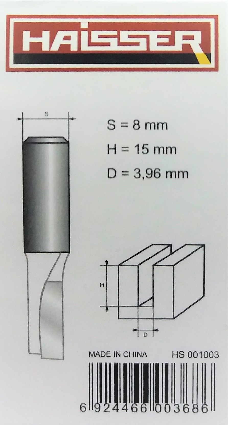 Фреза прямая пазовая S8 x D3.96 x H15, Haisser