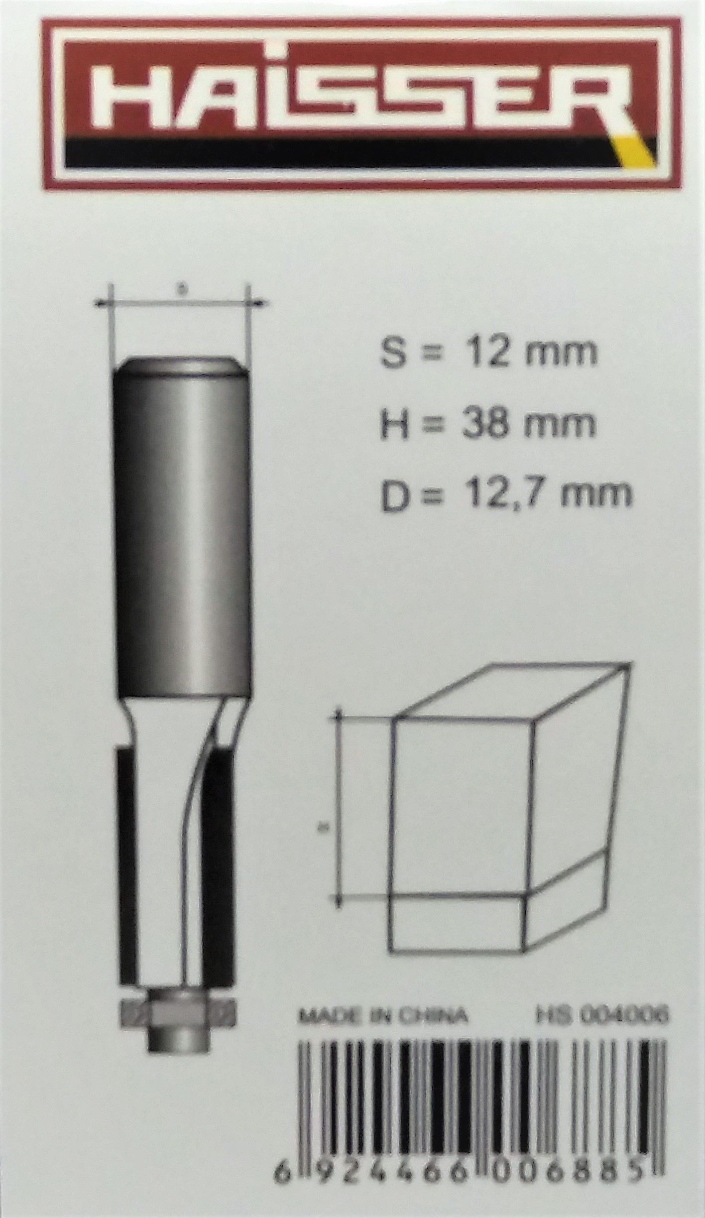 Фреза прямая с подшипником S12 x D12,7 x H38, Haisser