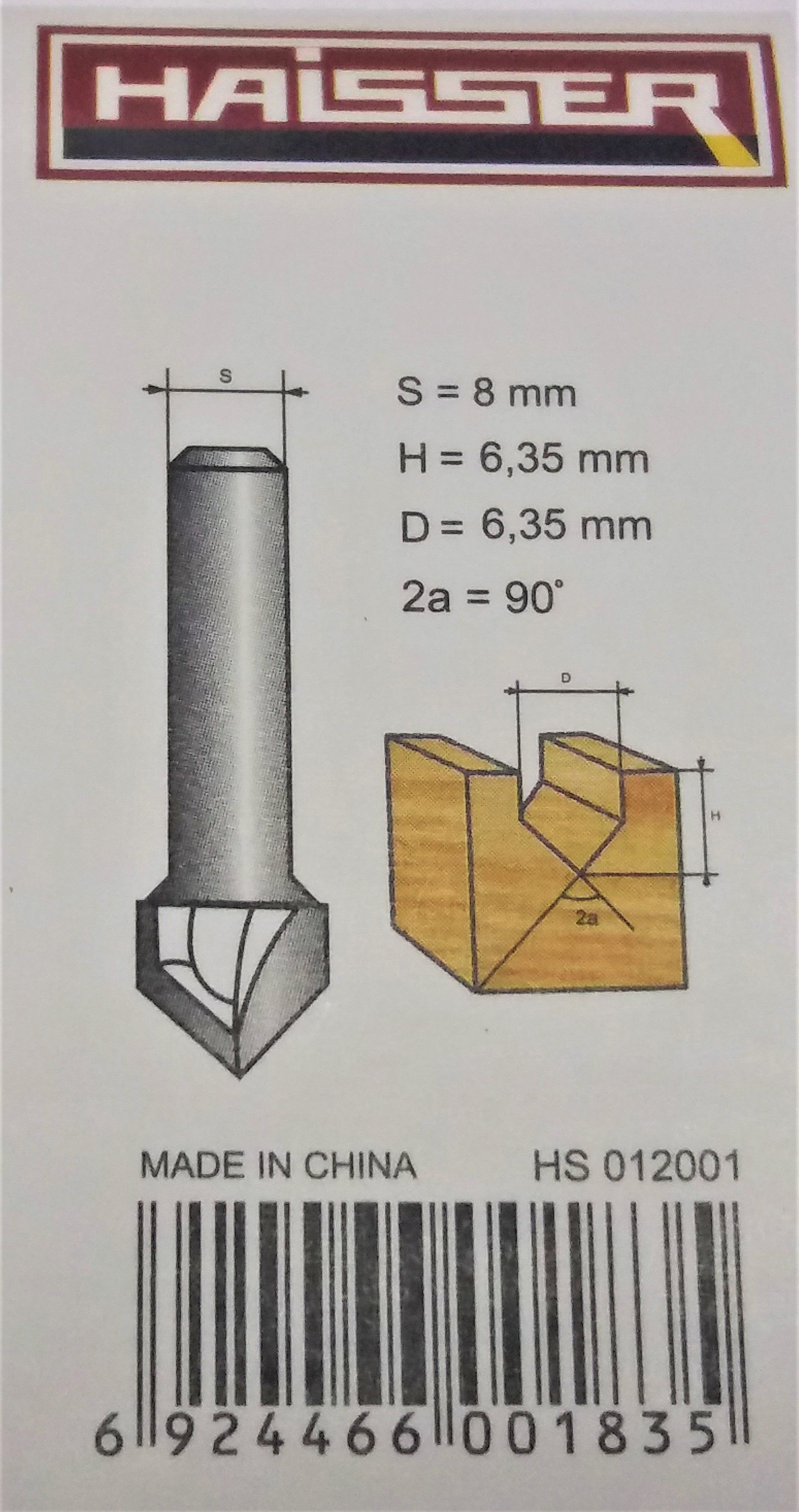 Фреза V-образная, 90 град. S8 x D6.35 x H6.35, Haisser